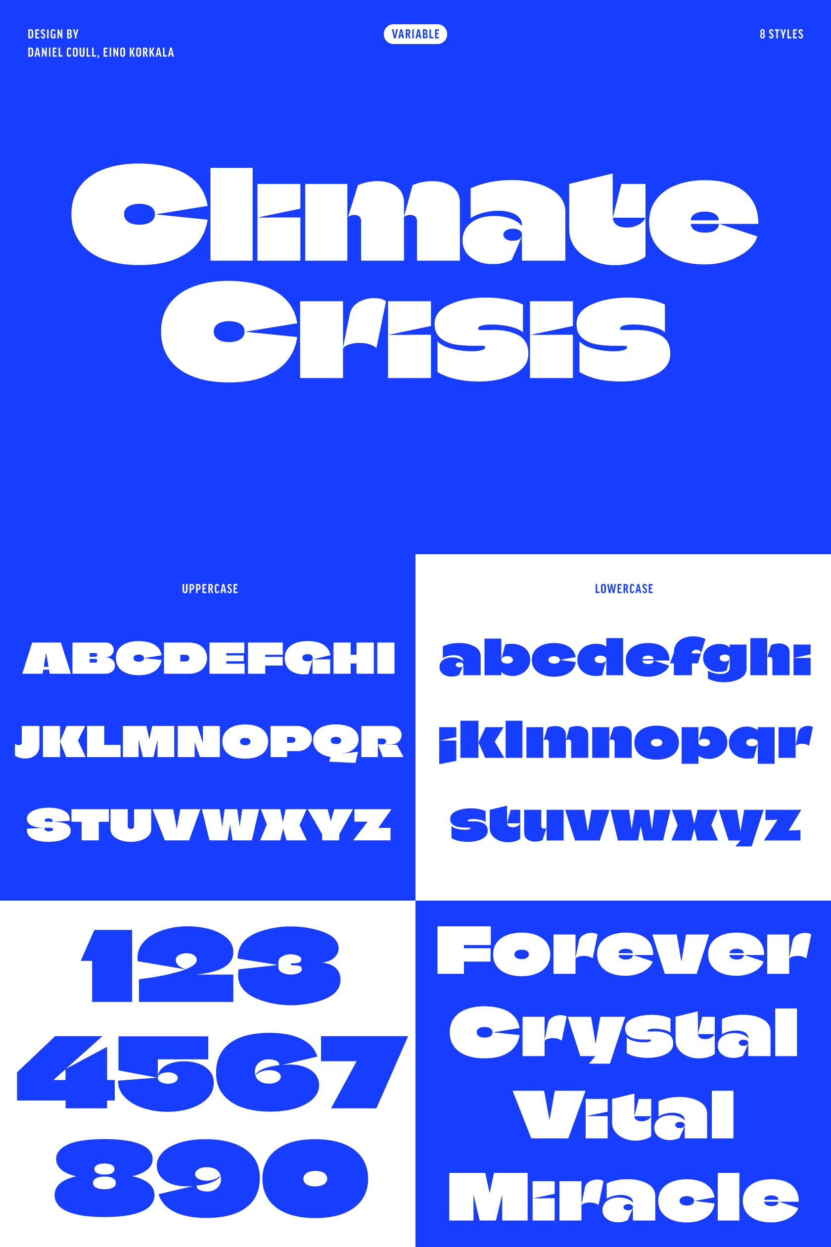 Climate Crisisは、極太のパワフル感溢れる特徴とは対照的に、気候変動による氷の減少を表現した社会的意義のあるフォントです。
