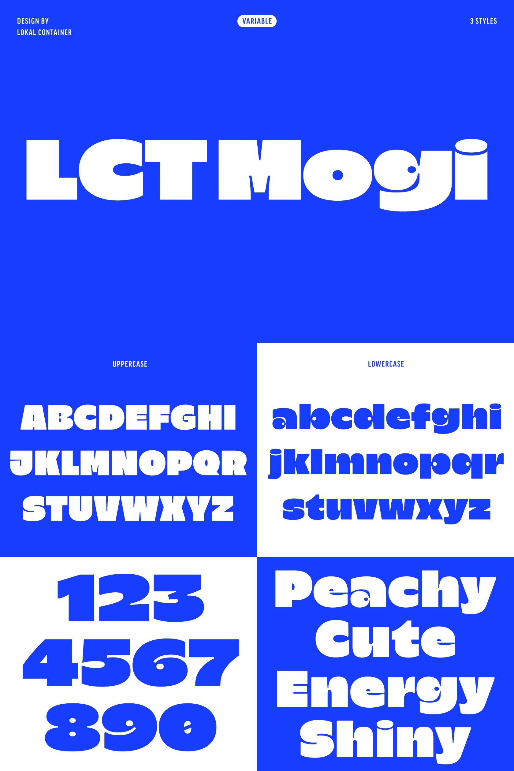 Lct Mogiは、幾何学的な形状と、飛び跳ねるような動きが特徴のフォントです。3つのウェイトを含み、バリアブルフォントにも対応しています。