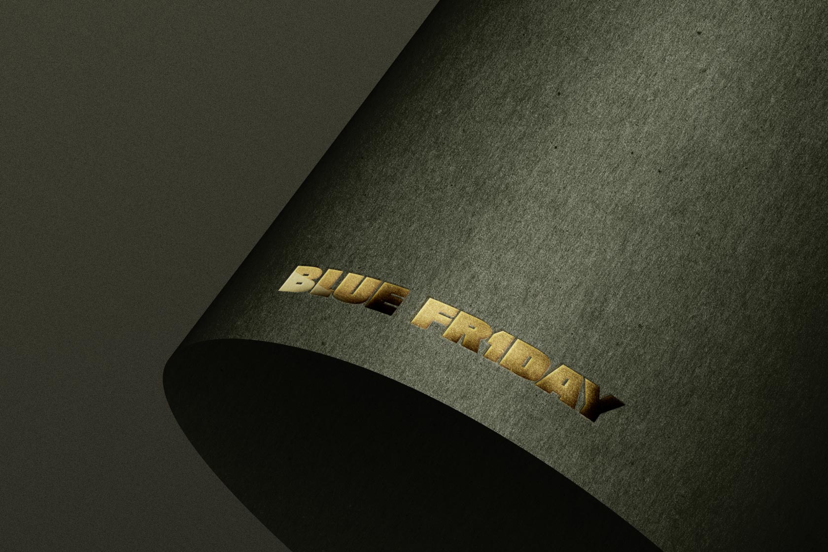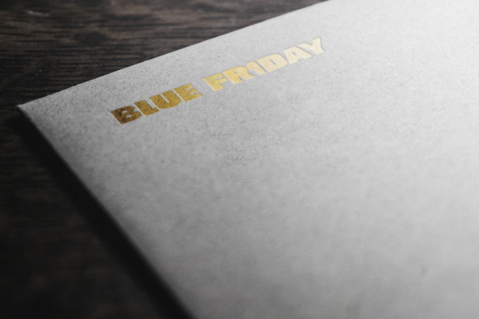 黒い紙に金の箔押し加工が施されたモックアップ素材。リッチでプレミアムな雰囲気を演出します。