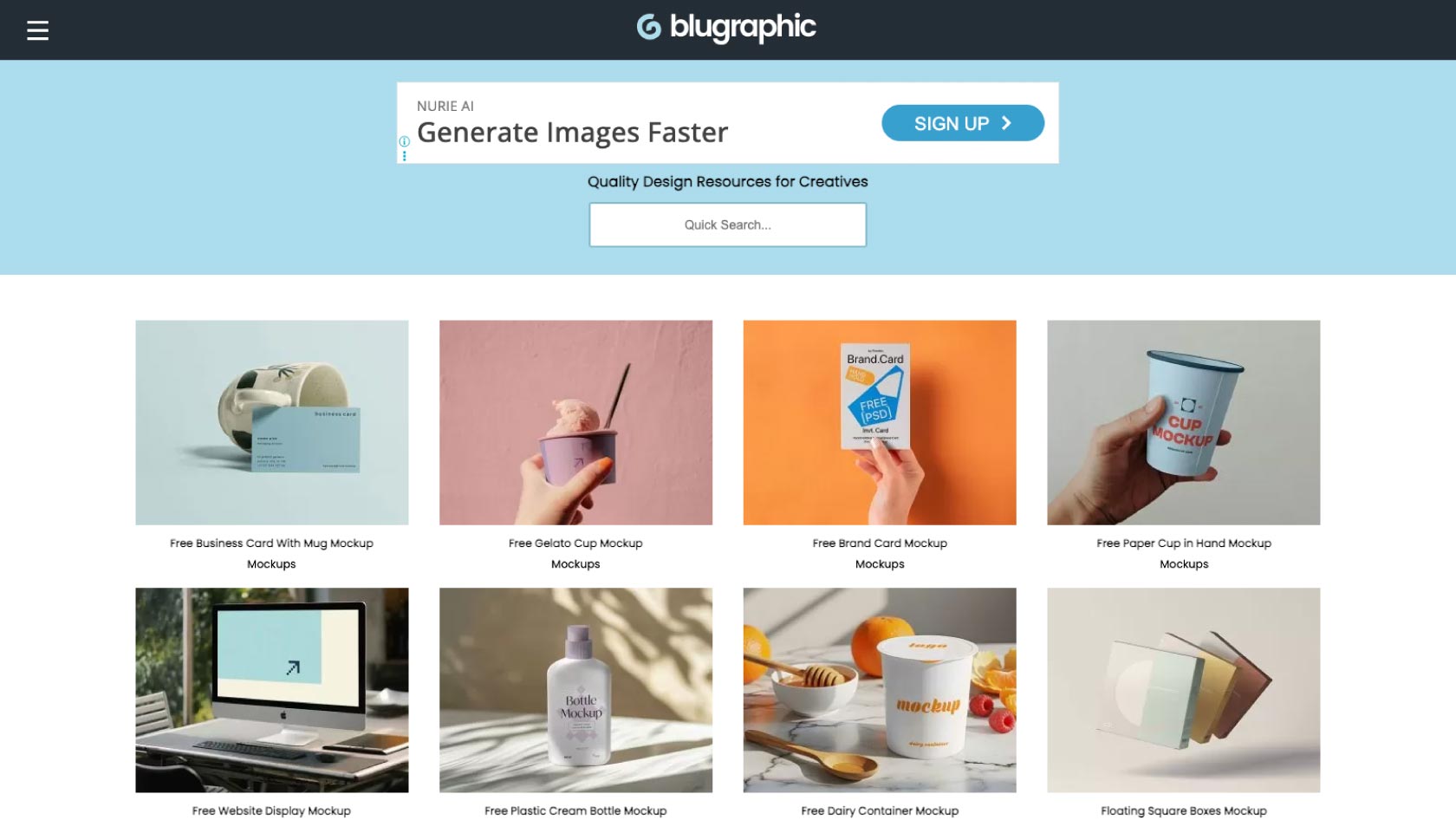 Blugraphic(ブルーグラフィック)は、既に紹介したサイトと比べると掲載件数は少ないですが、質の高いモックアップ素材をキュレーションしているサイトです。