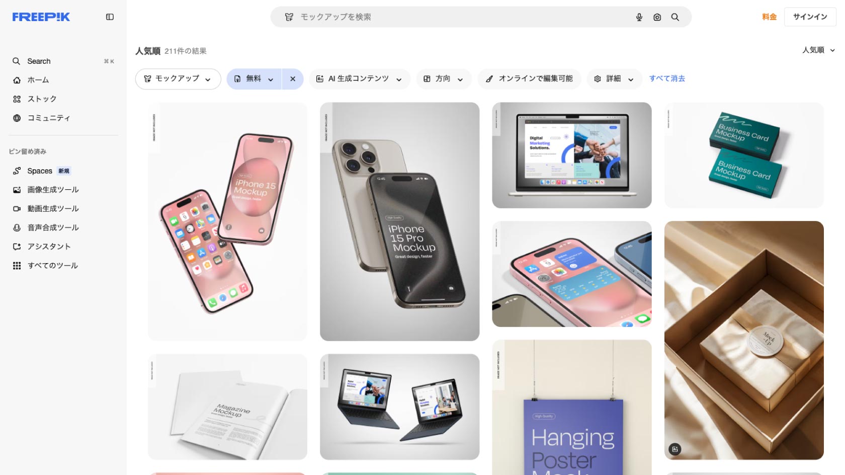 Freepikは、モックアップ素材をはじめ、様々なデザイン素材を取り扱う世界最大級のストックサイトです。モックアップ素材だけでも100万点以上のアイテムが公開されており、そのうち約200点のモックアップ素材が無料でダウンロードできます。