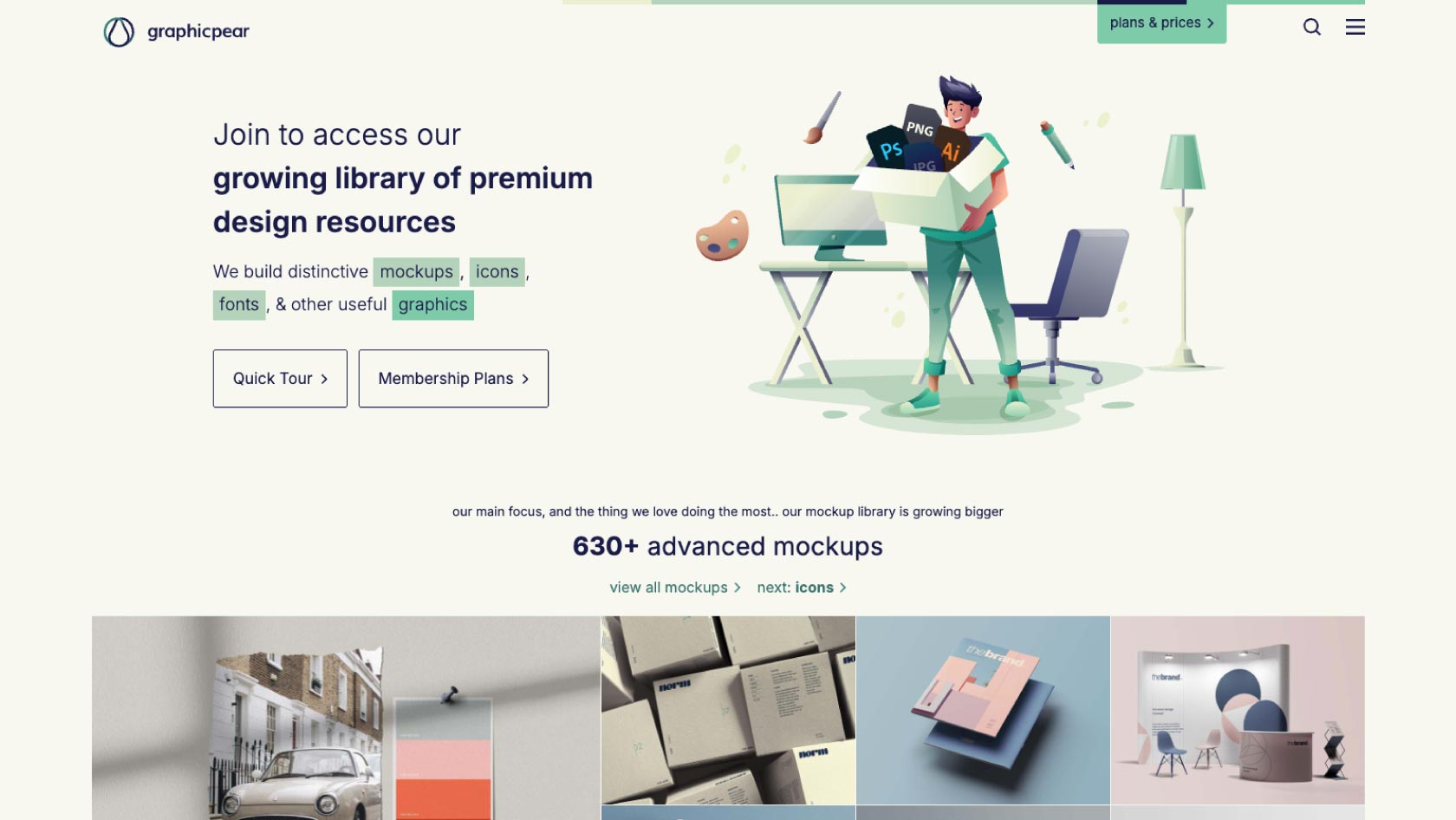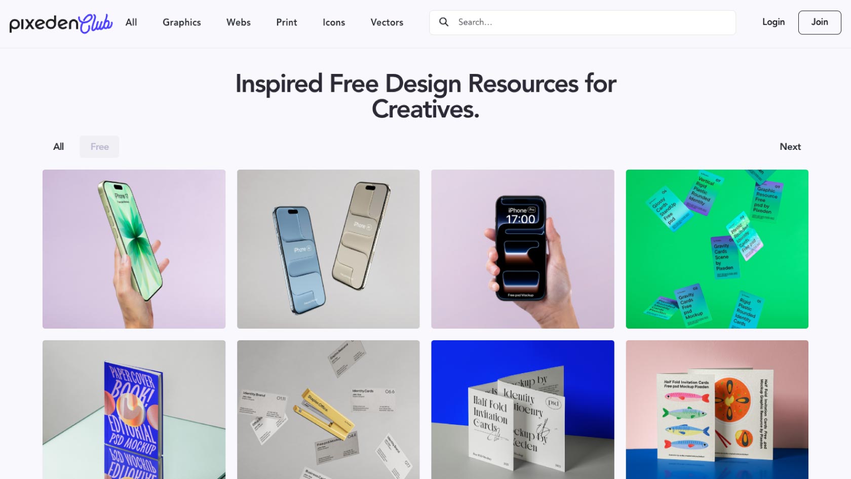 Graphic Pearは、シックでスタイリッシュなモックアップ素材が特徴のサイトです。会員登録することで、有料モックアップ素材の一部が無料でダウンロードできます。