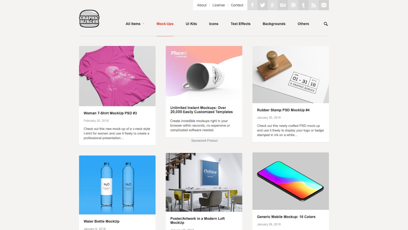 GraphicBurgerは、コンペやBehanceで定番のモックアップ素材を配布しているサイトです。「Shop Facade Logo MockUp」など、ポートフォリオでも人気のモックアップ素材が手に入ります。