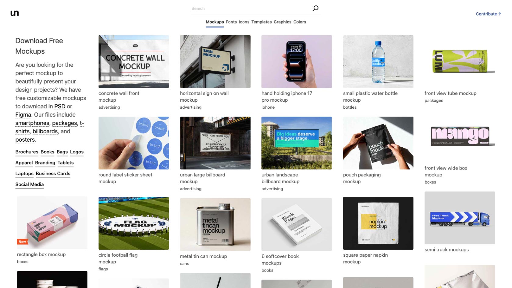 最近では、姉妹サイトであるパッケージ専門の有料モックアップサイト「Smarty Mockups」が統合し、5,000点以上のパッケージ素材が無料でダウンロードできるようになりました。