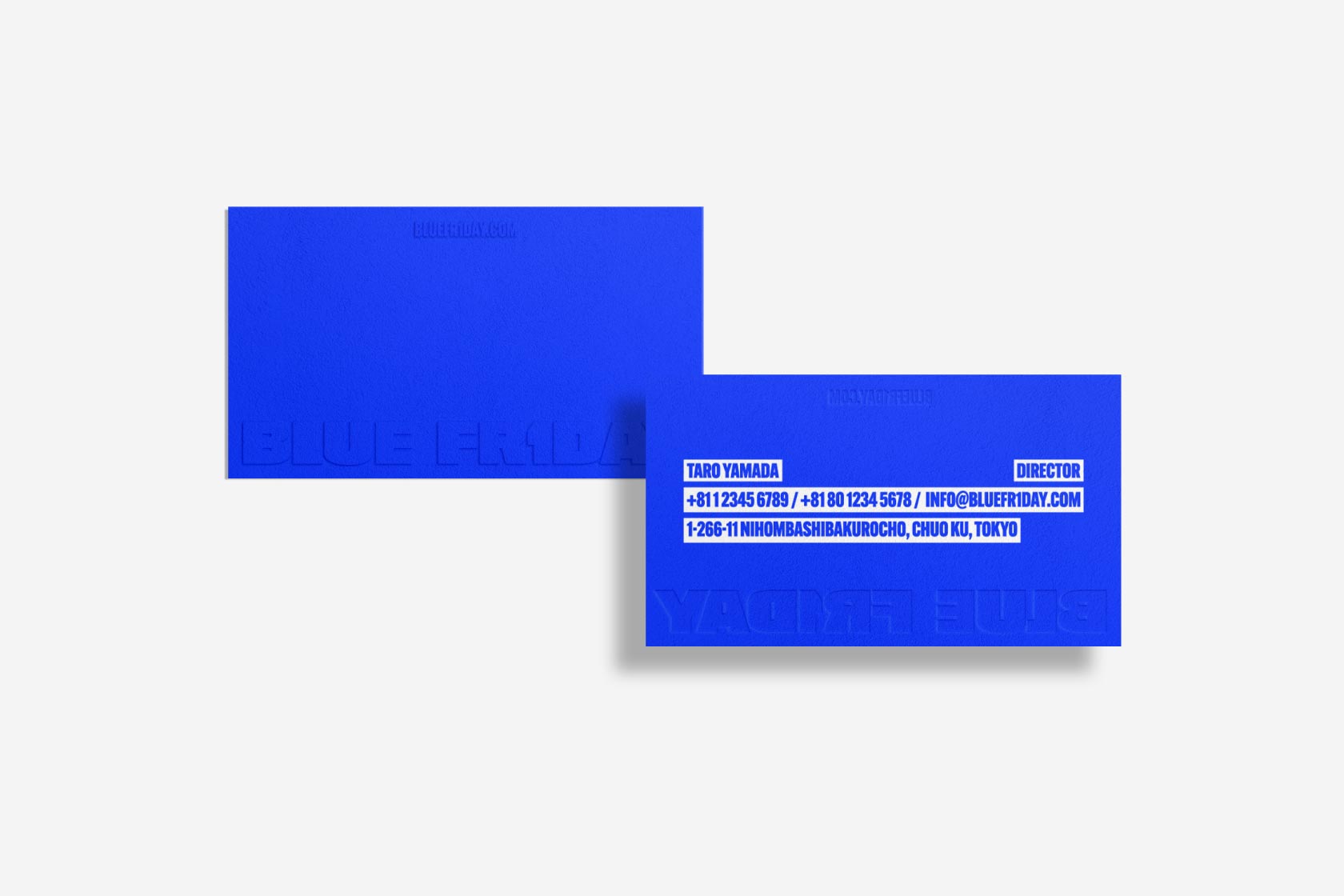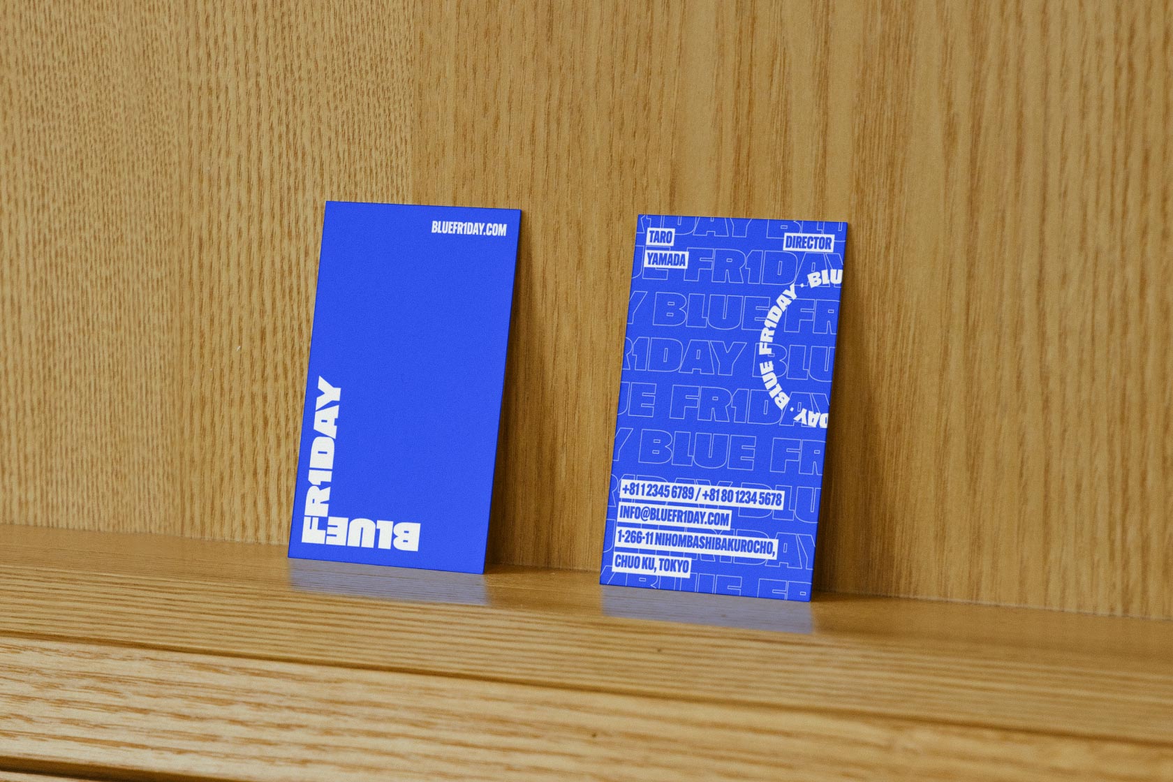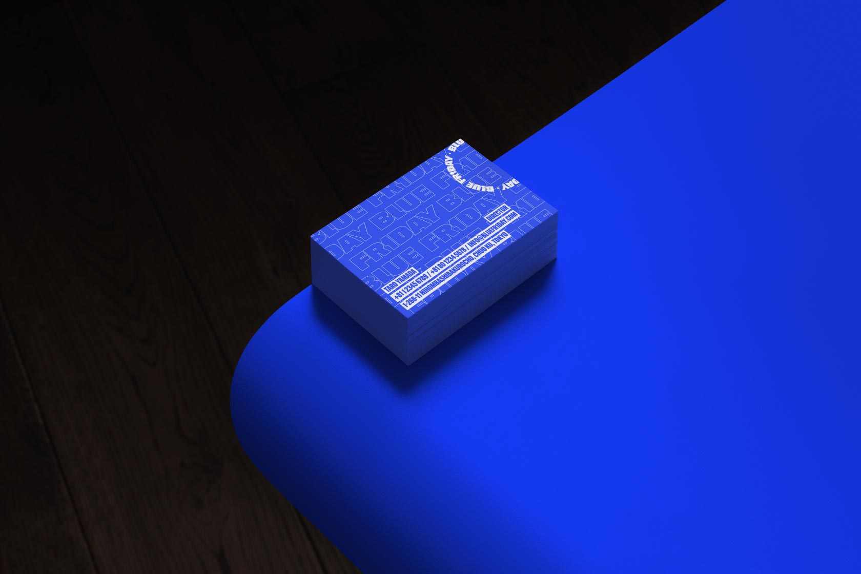 ブルーフライデーオリジナルの名刺のモックアップ素材。日本サイズ(91mm×55mm)に対応しています。