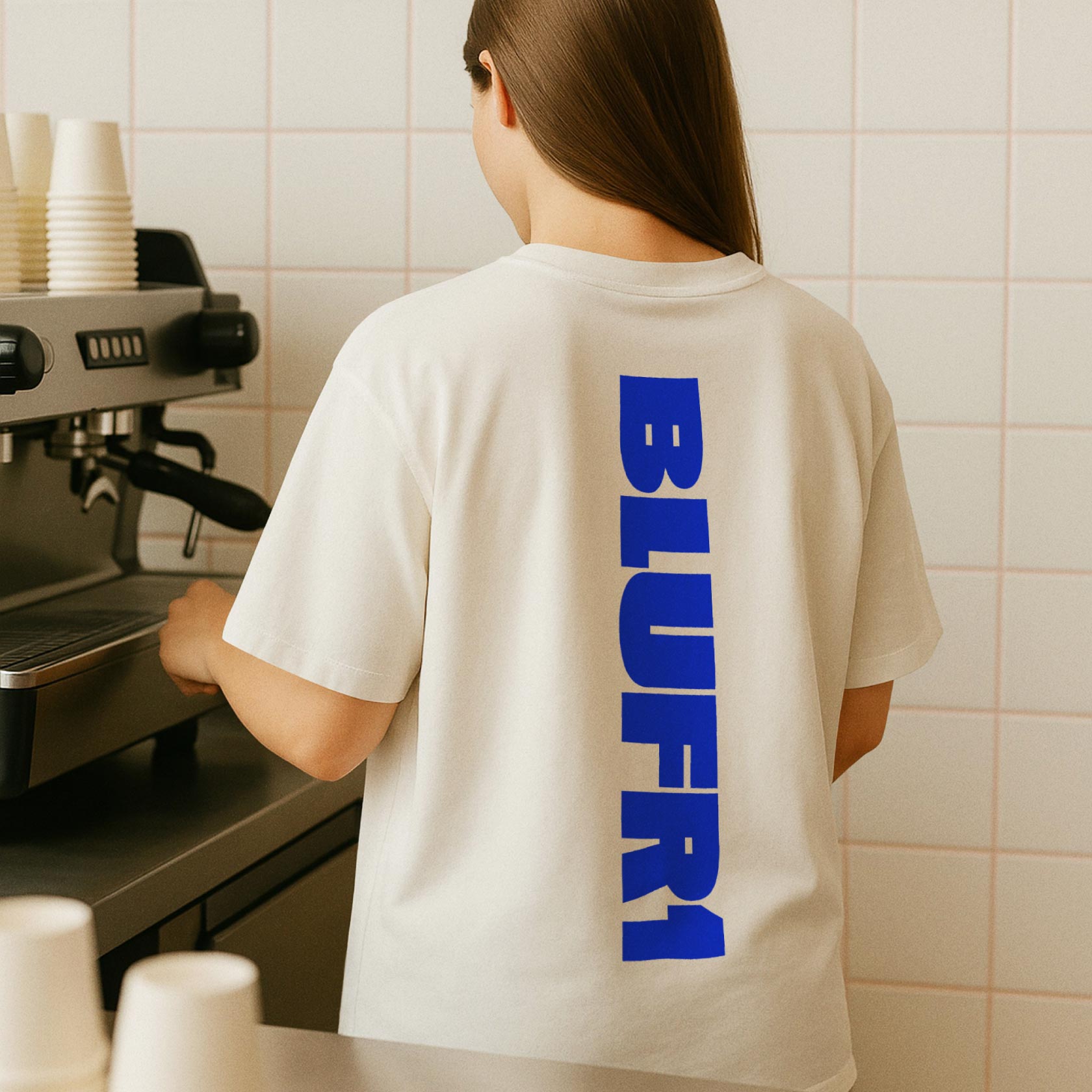 コーヒーを淹れる店員のTシャツのモックアップ素材。カフェなどの飲食店のデザインにおすすめです。