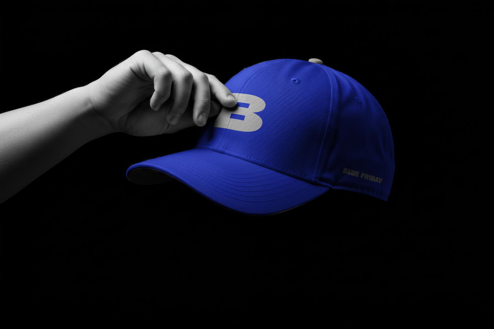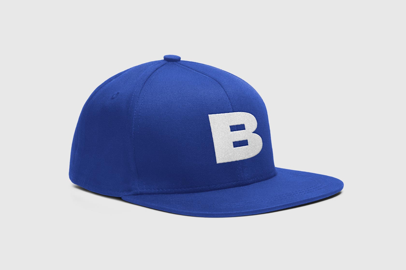 2種類のキャップがセットになったモックアップ素材。強いコントラストが特徴的で、ロゴやカラーが映えます