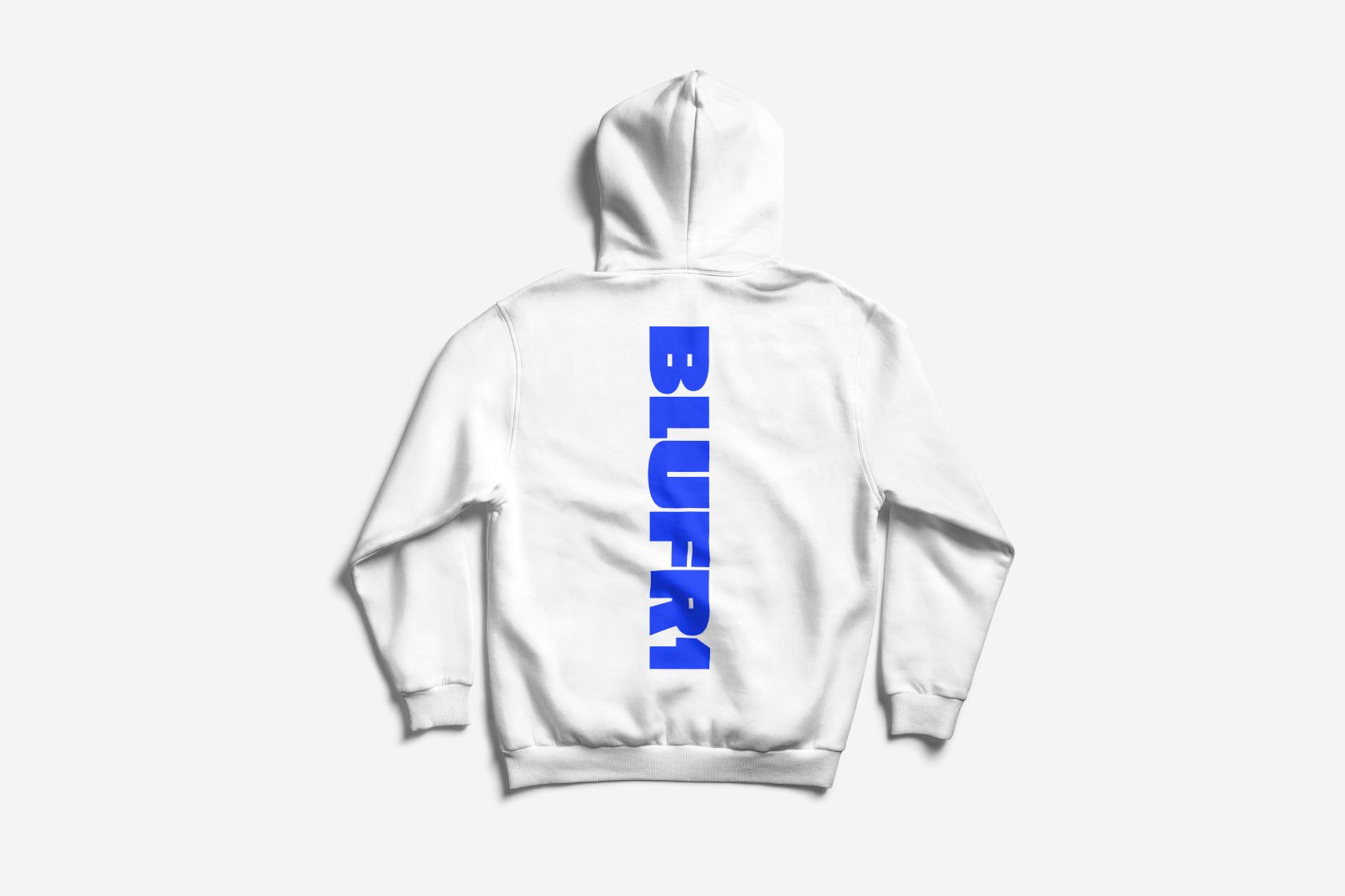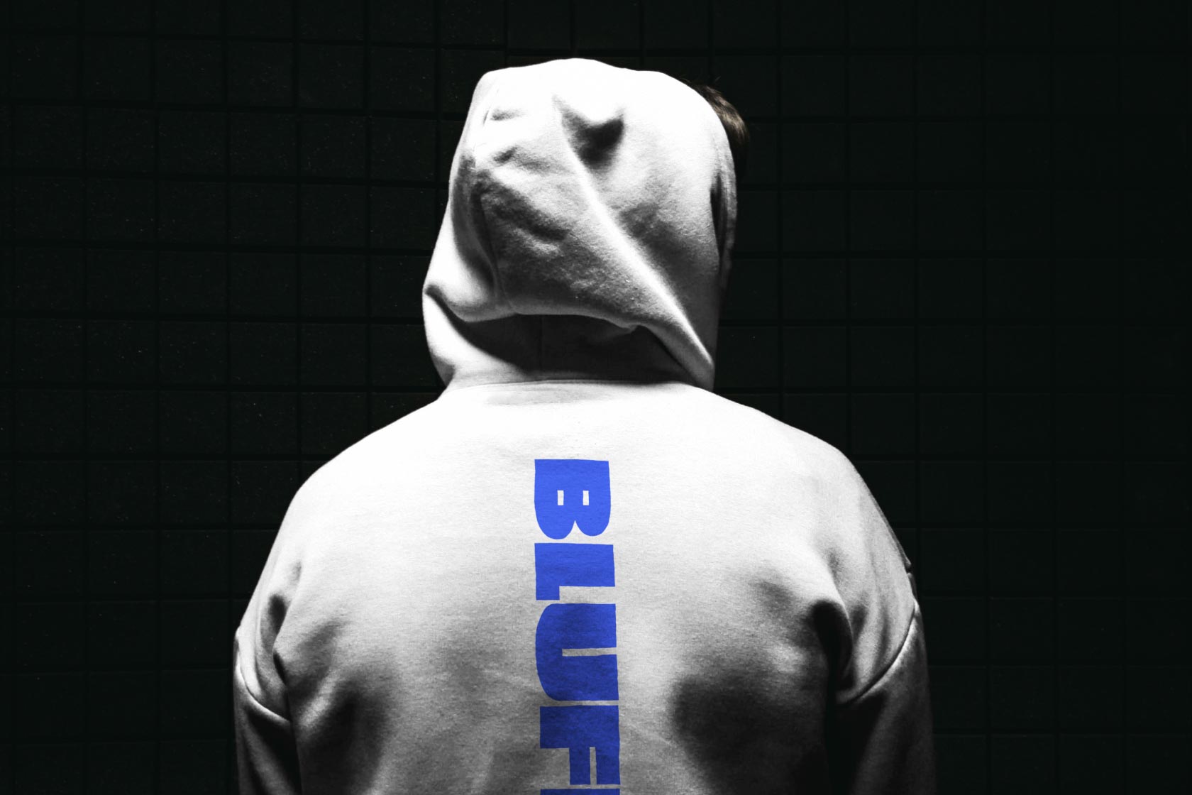 パーカーを着用した背面のモックアップ素材。引き込まれるような世界観で、デザインが際立ちます